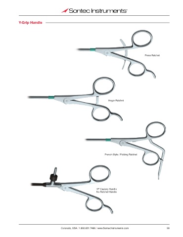 Y-Grip Handle Press Ratchet Hegar Ratchet French Style / Folding Ratchet HF Cautery Handle No Ratchet Handle Colorado, USA / 1.800.821.7496 / www.SontecInstruments.com 99