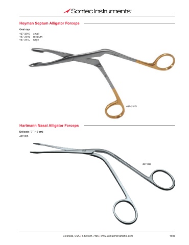 Heyman Septum Alligator Forceps Oval cup 467-331S small 467-331M medium 467-331L large 467-331S Hartmann Nasal Alligator Forceps Delicate / 7˝ (19 cm) 467-333 467-333 Colorado, USA / 1.800.821.7496 / www.SontecInstruments.com 1083