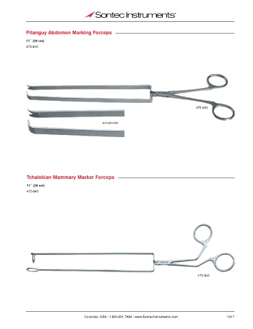 Pitanguy Abdomen Marking Forceps 11˝ (28 cm) 475-840 475-840 actual size Tchalekian Mammary Marker Forceps 11˝ (28 cm) 475-842 475-842 Colorado, USA / 1.800.821.7496 / www.SontecInstruments.com 1217