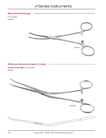 Baby Overholt Forceps 5 1/4˝ (13 cm) 2200-560 2200-560 McGivney Hemorrhoid Ligator Forceps Serrated / double-angled / 7 1/2˝ (19 cm) 508-553D 508-553D 1222 Colorado, USA / 1.800.821.7496 / www.SontecInstruments.com