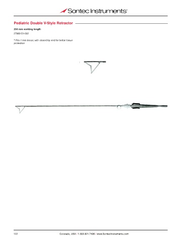 Pediatric Double V-Style Retractor 250 mm working length 27982-51-002 * Fits 7 mm trocar, with closed tip end for better tissue protection 122 Colorado, USA / 1.800.821.7496 / www.SontecInstruments.com