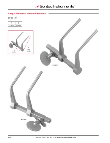 Caspar Distractor Vertebral Retractor 416-300 right 416-305 left A B 70 mm 93 mm A arm B length spread 416-305 416-300 1316 Colorado, USA / 1.800.821.7496 / www.SontecInstruments.com