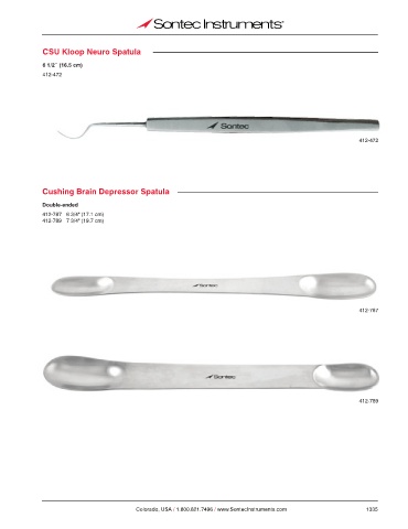 CSU Kloop Neuro Spatula 6 1/2˝ (16.5 cm) 412-472 412-472 Cushing Brain Depressor Spatula Double-ended 412-787 6 3/4" (17.1 cm) 412-789 7 3/4" (19.7 cm) 412-787 412-789 Colorado, USA / 1.800.821.7496 / www.SontecInstruments.com 1335