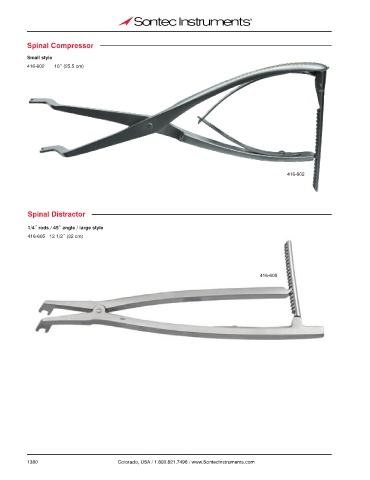 Spinal Compressor Small style 416-602 10’’ (25.5 cm) 416-602 Spinal Distractor 1/4˝ rods / 45˚ angle / large style 416-605 12 1/2˝ (32 cm) 416-605 1380 Colorado, USA / 1.800.821.7496 / www.SontecInstruments.com