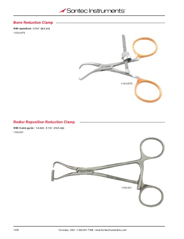 Bone Reduction Clamp With speedlock / 3 3/4˝ (9.5 cm) 1103-037S 1103-037S Redler Reposition Reduction Clamp With K-wire guide / 1.6 mm / 5 1/4˝ (13.5 cm) 1103-031 1103-031 1456 Colorado, USA / 1.800.821.7496 / www.SontecInstruments.com