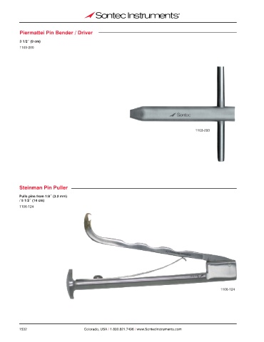 Piermattei Pin Bender / Driver 3 1/2˝ (9 cm) 1103-200 1103-200 Steinman Pin Puller Pulls pins from 1/8˝ (3.2 mm) / 5 1/2˝ (14 cm) 1106-124 1106-124 1532 Colorado, USA / 1.800.821.7496 / www.SontecInstruments.com