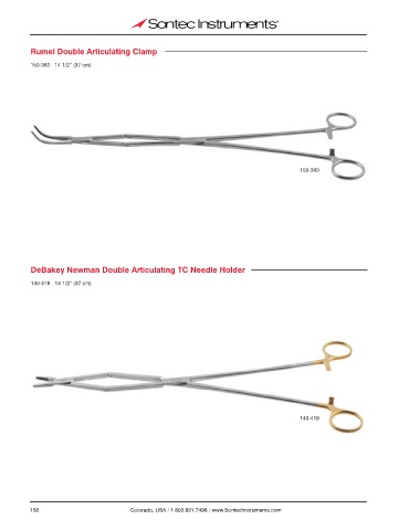 Rumel Double Articulating Clamp 150-360 14 1/2” (37 cm) 150-360 DeBakey Newman Double Articulating TC Needle Holder 140-418 14 1/2” (37 cm) 140-418 156 Colorado, USA / 1.800.821.7496 / www.SontecInstruments.com