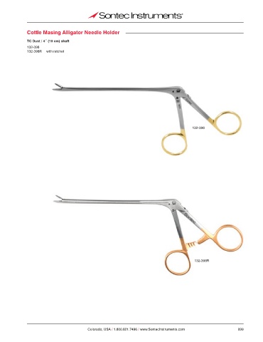 Cottle Masing Alligator Needle Holder TC Dust / 4˝ (10 cm) shaft 132-398 132-398R with ratchet 132-398 132-398R Colorado, USA / 1.800.821.7496 / www.SontecInstruments.com 999