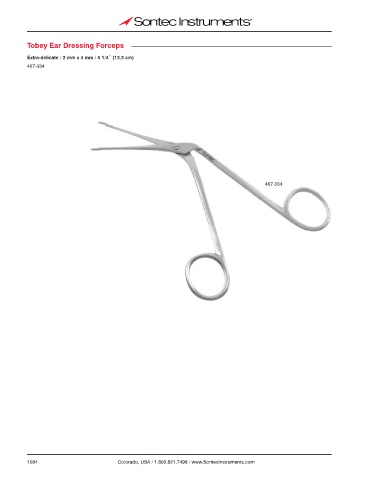 Tobey Ear Dressing Forceps Extra-delicate / 2 mm x 4 mm / 5 1/4˝ (13.3 cm) 467-334 467-334 1084 Colorado, USA / 1.800.821.7496 / www.SontecInstruments.com