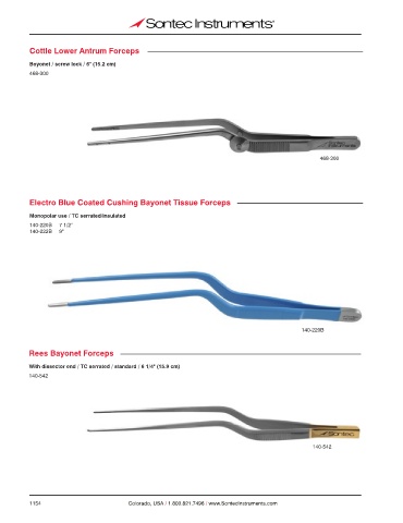 Electro Blue Coated Cushing Bayonet Tissue Forceps