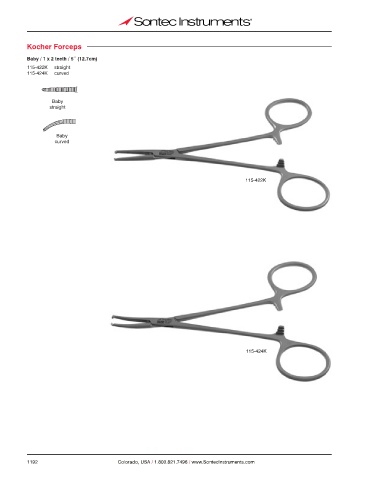 Kocher Forceps Baby / 1 x 2 teeth / 5˝ (12.7cm) 115-422K straight 115-424K curved Baby straight Baby curved 115-422K 115-424K 1192 Colorado, USA / 1.800.821.7496 / www.SontecInstruments.com