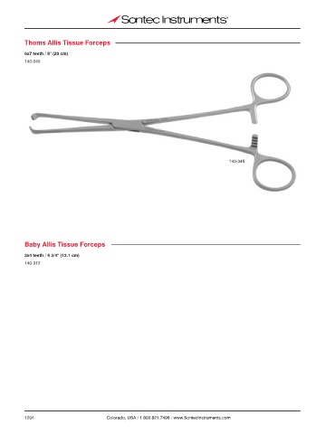 Thoms Allis Tissue Forceps 6x7 teeth / 8" (20 cm) 140-345 140-345 Baby Allis Tissue Forceps 3x4 teeth / 4 3/4" (12.1 cm) 140-312 1204 Colorado, USA / 1.800.821.7496 / www.SontecInstruments.com