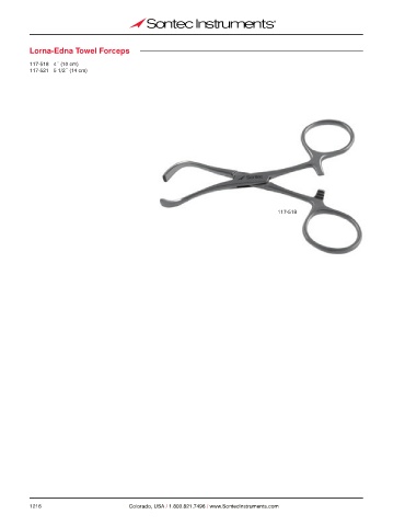 Lorna-Edna Towel Forceps 117-518 4˝ (10 cm) 117-521 5 1/2˝ (14 cm) 117-518 1216 Colorado, USA / 1.800.821.7496 / www.SontecInstruments.com