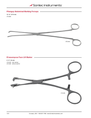 Pitanguy Abdominal Marking Forceps 12 1/2˝ (31.8 cm) 475-849 475-849 D’assumpcoa Face Lift Marker 6 1/4˝ (16 cm) 215-028 with ratchet 215-029 without ratchet 215-028 1224 Colorado, USA / 1.800.821.7496 / www.SontecInstruments.com