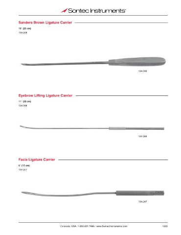 Sanders Brown Ligature Carrier 10" (25 cm) 134-248 134-248 Eyebrow Lifting Ligature Carrier 11" (28 cm) 134-268 134-268 Facia Ligature Carrier 6" (15 cm) 134-247 134-247 Colorado, USA / 1.800.821.7496 / www.SontecInstruments.com 1263