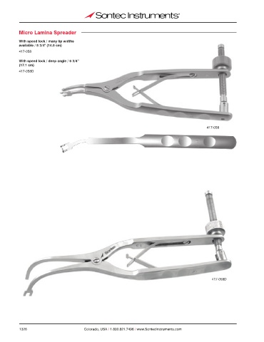 Micro Lamina Spreader With speed lock / many tip widths available / 5 3/4" (14.5 cm) 417-058 With speed lock / deep angle / 6 3/4” (17.1 cm) 417-058D 417-058 417-058D 1326 Colorado, USA / 1.800.821.7496 / www.SontecInstruments.com