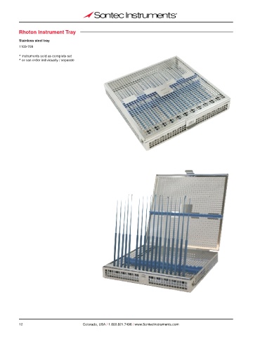 Rhoton Instrument Tray Stainless steel tray 1103-708 * instruments sold as complete set * or can order individually / separate 12 Colorado, USA / 1.800.821.7496 / www.SontecInstruments.com
