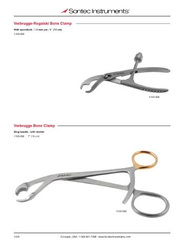 Verbrugge-Rogalski Bone Clamp With speedlock / 1.5 mm jaw / 4˝ (10 cm) 1103-069 1103-069 Verbrugge Bone Clamp Ring handle / with ratchet 1103-068 7” (18 cm) 1103-068 1426 Colorado, USA / 1.800.821.7496 / www.SontecInstruments.com