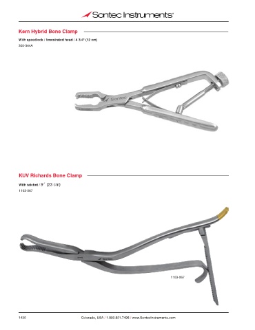 Kern Hybrid Bone Clamp With speedlock / fenestrated head / 4 3/4" (12 cm) 305-344A KUV Richards Bone Clamp With ratchet / 9˝ (23 cm) 1103-067 1103-067 1430 Colorado, USA / 1.800.821.7496 / www.SontecInstruments.com