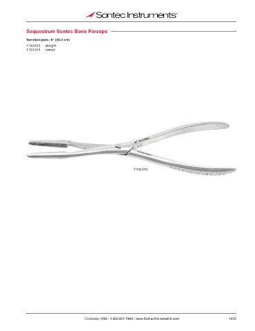 Sequestrum Sontec Bone Forceps Serrated jaws / 8" (20.3 cm) 1103-013 straight 1103-014 curved 1103-013 Colorado, USA / 1.800.821.7496 / www.SontecInstruments.com 1435