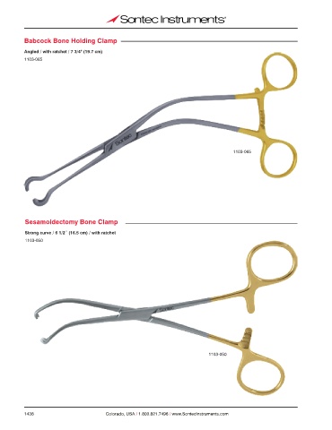 Babcock Bone Holding Clamp Angled / with ratchet / 7 3/4" (19.7 cm) 1103-065 1103-065 Sesamoidectomy Bone Clamp Strong curve / 6 1/2˝ (16.5 cm) / with ratchet 1103-050 1103-050 1438 Colorado, USA / 1.800.821.7496 / www.SontecInstruments.com