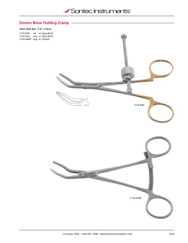 Doolen Bone Holding Clamp 2mm wide jaw / 5.5’’ (14cm) 1103-845 str w/ speedlock 1103-846 ang w/ speedlock 1103-846R ang w/ ratchet 1103-846 1103-846R Colorado, USA / 1.800.821.7496 / www.SontecInstruments.com 1439