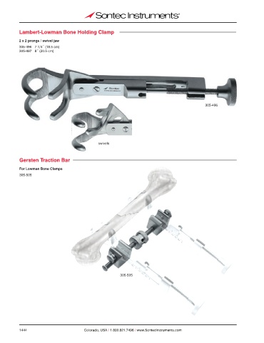 Lambert-Lowman Bone Holding Clamp 2 x 2 prongs / swivel jaw 305-496 7 1/4˝ (18.5 cm) 305-497 8˝ (20.5 cm) 305-496 swivels Gersten Traction Bar For Lowman Bone Clamps 305-505 305-505 1444 Colorado, USA / 1.800.821.7496 / www.SontecInstruments.com