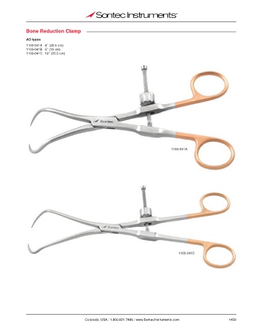 Bone Reduction Clamp AO types 1103-041A 8˝ (20.5 cm) 1103-041B 6” (15 cm) 1103-041C 10” (25.5 cm) 1103-041A 1103-041C Colorado, USA / 1.800.821.7496 / www.SontecInstruments.com 1459