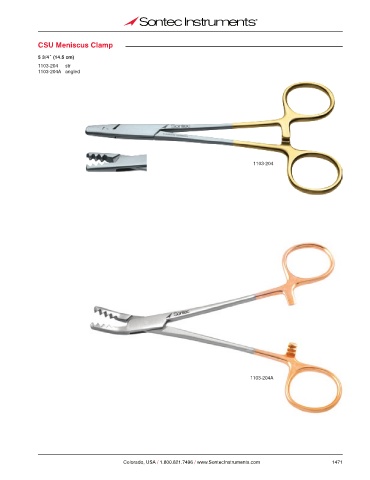 CSU Meniscus Clamp 5 3/4˝ (14.5 cm) 1103-204 str 1103-204A angled 1103-204 1103-204A Colorado, USA / 1.800.821.7496 / www.SontecInstruments.com 1471