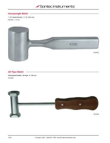 Heavyweight Mallet 1 1/2˝ head diameter / 7 1/4" (18.5 cm) 330-832 1.72 lbs 330-832 AO Type Mallet Fenestrated handle / AO type / 9˝ (23 cm) 330-839 330-839 1526 Colorado, USA / 1.800.821.7496 / www.SontecInstruments.com