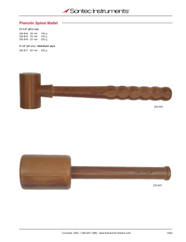 Phenolic Spinal Mallet 10 1/4” (26.5 cm) 330-844 35 mm 150 g 330-845 45 mm 240 g 330-846 50 mm 330 g 9 1/2” (24 cm) / Steinbach style 330-847 60 mm 400 g 330-844 330-847 Colorado, USA / 1.800.821.7496 / www.SontecInstruments.com 1529