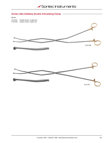 Sontec Allis DeBakey Double Articulating Clamp 50 cm 2100-937 straight shanks, angled tips 2100-938 angled shanks, angled tips 2100-938 2100-937 Colorado, USA / 1.800.821.7496 / www.SontecInstruments.com 153