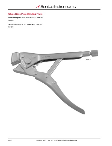 Whale Nose Plate Bending Pliers Bends small plates up to 2.7 mm / 7 3/4˝ (19.5 cm) 355-230 Bends large plates up to 3.5 mm / 9 1/2˝ (24 cm) 355-235 355-235 1552 Colorado, USA / 1.800.821.7496 / www.SontecInstruments.com