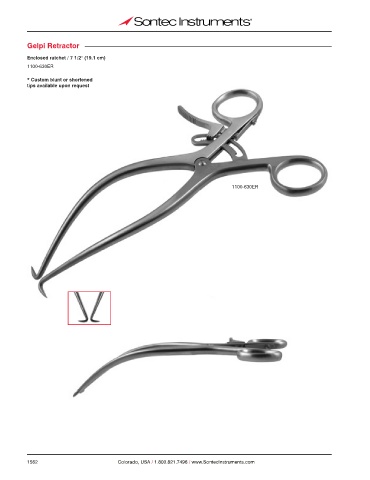Gelpi Retractor Enclosed ratchet / 7 1/2" (19.1 cm) 1100-630ER * Custom blunt or shortened tips available upon request 1100-630ER 1562 Colorado, USA / 1.800.821.7496 / www.SontecInstruments.com