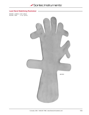 Lead Hand Stabilizing Restrainer 48-0339 pediatric 9 3/4’’ (25cm) 48-0340 adult 14 1/2’’ (37cm) 48-0340 Colorado, USA / 1.800.821.7496 / www.SontecInstruments.com 1593