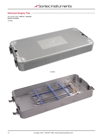 Universal Surgery Tray 10" x 21.5" x 2.5" / with lid / universal keyhole brackets 18-3560 18-3560 14 Colorado, USA / 1.800.821.7496 / www.SontecInstruments.com
