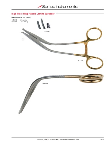Inge Micro Ring Handle Lamina Spreader With ratchet / 6 1/4˝ (16 cm) 417-046 4x4 mm tip 417-047 1.5x4 mm tip 417-046 417-046 sideview Colorado, USA / 1.800.821.7496 / www.SontecInstruments.com 1599