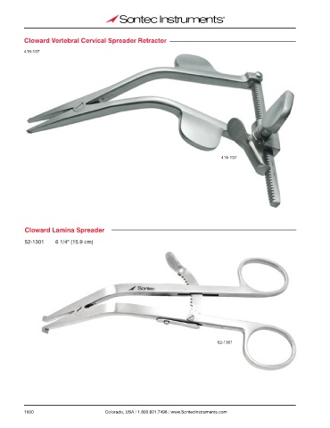 Cloward Vertebral Cervical Spreader Retractor 416-137 416-137 Cloward Lamina Spreader 52-1301 6 1/4" (15.9 cm) 52-1301 1600 Colorado, USA / 1.800.821.7496 / www.SontecInstruments.com