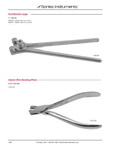 Rod Bender Large 11˝ (28 cm) 355-240 bends rods up to 7 mm 355-241 bends rods up to 5.5 mm 355-240 Aderer Wire Bending Pliers 5 3/4˝ (14.5 cm) 1103-120 1103-120 1608 Colorado, USA / 1.800.821.7496 / www.SontecInstruments.com