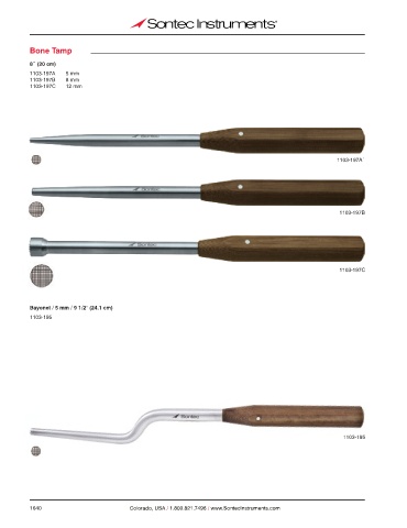Bone Tamp 8˝ (20 cm) 1103-197A 5 mm 1103-197B 8 mm 1103-197C 12 mm 1103-197A` 1103-197B 1103-197C Bayonet / 5 mm / 9 1/2" (24.1 cm) 1103-195 1103-195 1640 Colorado, USA / 1.800.821.7496 / www.SontecInstruments.com