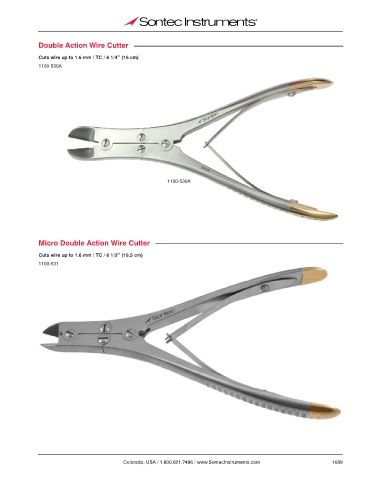 Double Action Wire Cutter Cuts wire up to 1.6 mm / TC / 6 1/4’’ (16 cm) 1100-530A 1100-530A Micro Double Action Wire Cutter Cuts wire up to 1.6 mm / TC / 6 1/2’’ (16.5 cm) 1100-531 Colorado, USA / 1.800.821.7496 / www.SontecInstruments.com 1689