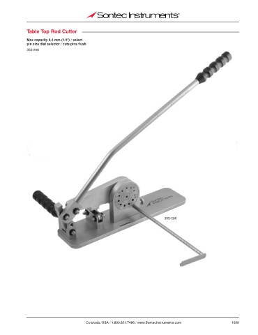 Table Top Rod Cutter Max capacity 6.4 mm (1/4") / select pin size dial selector / cuts pins flush 355-206 355-206 Colorado, USA / 1.800.821.7496 / www.SontecInstruments.com 1699