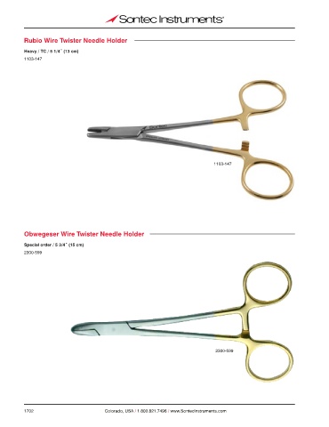 Rubio Wire Twister Needle Holder Heavy / TC / 5 1/4˝ (13 cm) 1103-147 1103-147 Obwegeser Wire Twister Needle Holder Special order / 5 3/4˝ (15 cm) 2300-599 2300-599 1702 Colorado, USA / 1.800.821.7496 / www.SontecInstruments.com