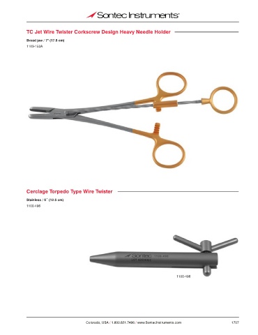 TC Jet Wire Twister Corkscrew Design Heavy Needle Holder Broad jaw / 7" (17.8 cm) 1103-152A Cerclage Torpedo Type Wire Twister Stainless / 5˝ (12.5 cm) 1100-496 1100-496 Colorado, USA / 1.800.821.7496 / www.SontecInstruments.com 1707