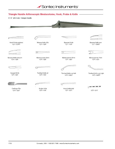 Triangle Handle Arthroscopic Meniscotome, Hook, Probe & Knife