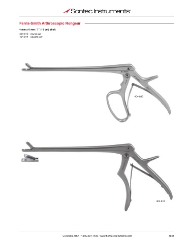 Ferris-Smith Arthroscopic Rongeur 4 mm x 6 mm / 7˝ (18 cm) shaft 404-813 round jaw 404-814 square jaw 404-813 404-814 Colorado, USA / 1.800.821.7496 / www.SontecInstruments.com 1831
