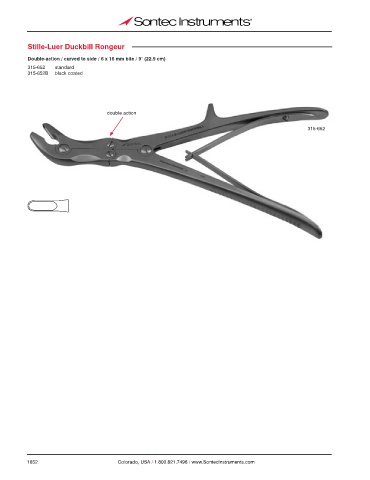 Stille-Luer Duckbill Rongeur Double-action / curved to side / 6 x 16 mm bite / 9" (22.9 cm) 315-652 standard 315-652B black coated double action 315-652 1852 Colorado, USA / 1.800.821.7496 / www.SontecInstruments.com