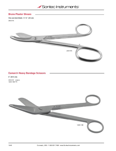 Bruns Plaster Shears One serrated blade / 9 1/2˝ (24 cm) 240-615 240-615 Esmarch Heavy Bandage Scissors 8˝ (20.5 cm) 240-610 classic 1200-188 PC 1200-188 1946 Colorado, USA / 1.800.821.7496 / www.SontecInstruments.com