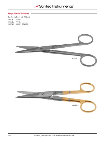 Mayo Noble Scissors Beveled blades / 6 1/2" (16.5 cm) 110-274 straight 110-275 curved 1200-260 straight powercut 1200-261 curved powercut 110-274 1200-260 1960 Colorado, USA / 1.800.821.7496 / www.SontecInstruments.com