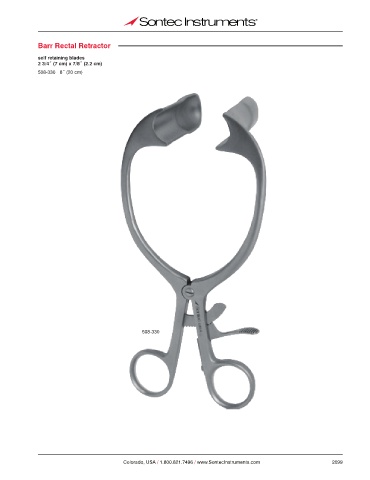 Barr Rectal Retractor self retaining blades 2 3/4˝ (7 cm) x 7/8˝ (2.2 cm) 508-330 8˝ (20 cm) 508-330 Colorado, USA / 1.800.821.7496 / www.SontecInstruments.com 2099